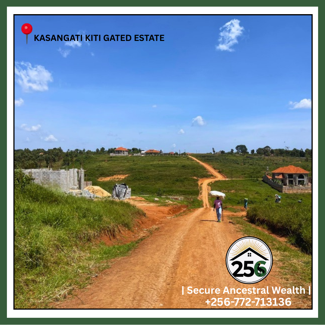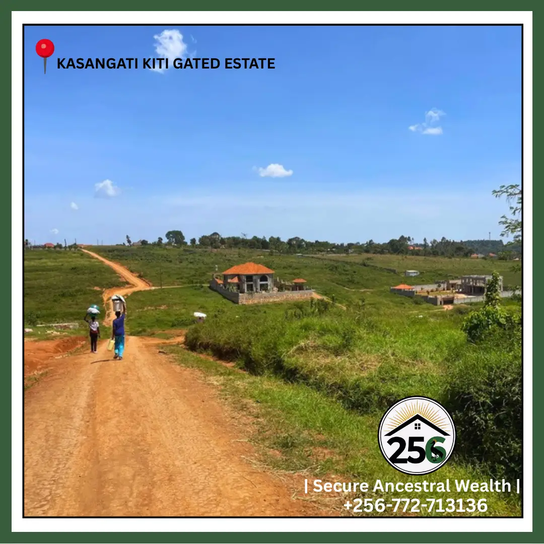 These 100ft by 100ft plots for quick sale in Kasangati–Kiti are located inside a planned gated community estate within Wakiso District, one of the fastest-growing residential corridors in the Kampala Metropolitan Area.