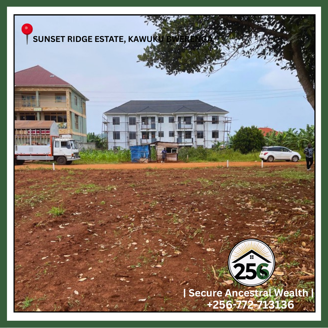 A2: Plots are 50×100 ft, priced at UGX 80M, offering one of the best mixed-use entry points in Kawuku-Bwerenga.